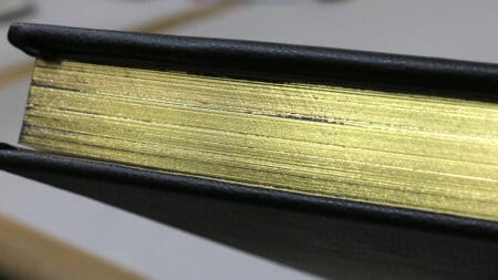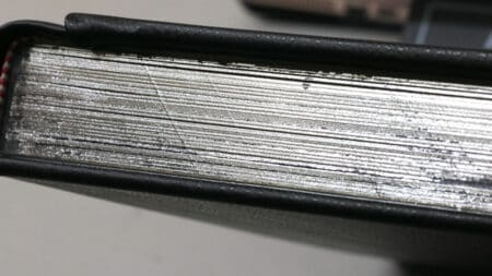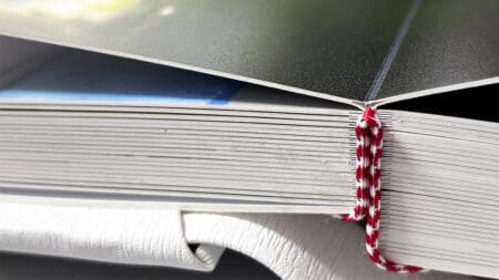 Copertina in ecopelle con personalizzazione stampa rilievo UV, nella parte superiore.